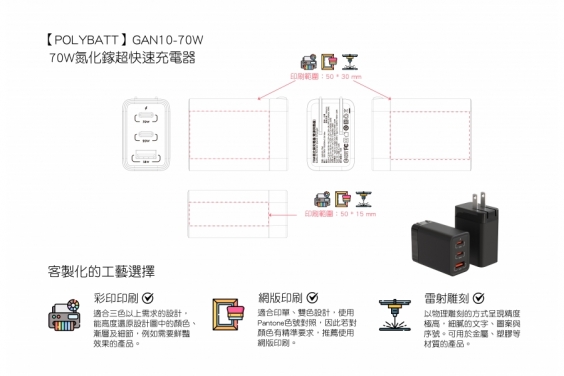 【POLYBATT】70W 氮化鎵(GaN) 快充型充電器 GAN10-70W