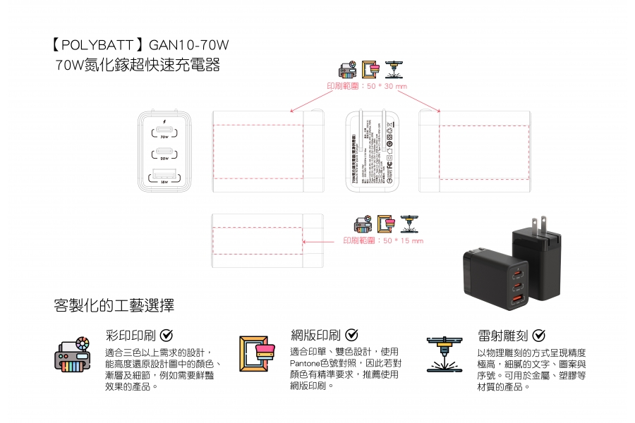 ‧ 不會因時間、摩擦或溫度變化而褪色。常用於金屬、不鏽鋼、塑膠等材質的產品。