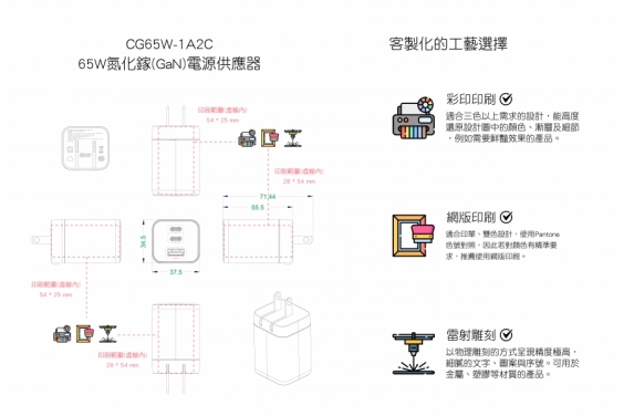 CG65W-1A2C - 65W氮化鎵(GaN)電源供應器