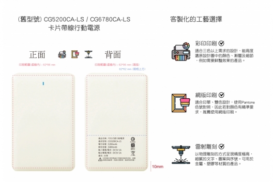CG5200CA-LS / CG6780CA-LS - 卡片帶線行動電源
