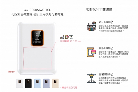 CG10000MWC-TCL - 可拆卸自帶雙線磁吸三用(手錶/手機/耳機)快充行動電源
