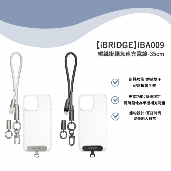 【iBRIDGE】IBA009 編織掛繩急速充電線-35cm