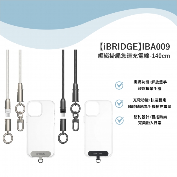【iBRIDGE】IBA009 編織掛繩急速充電線-140cm