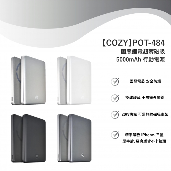 【COZY】POT484 - 固態鋰電超薄磁吸 5000mAh行動電源