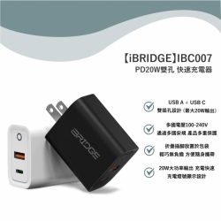 【iBRIDGE】IBC007 - 20W雙孔快充充電器 • USB-C+USB-A 可同時充2隻設備 • 充電燈光指示燈 • 機身70g+摺疊插腳 方便攜帶 另有客製化印刷服務←點此可看更多資訊! 更多其他產品 客製化案例