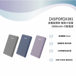 【ASPOR】A381 - 鋁合金超薄款 磁吸5000mAh行動電源 • 超薄體積 • 金屬質感 • 雙向快充 另有客製化印刷服務←點此可看更多資訊!歡迎詢問! Read More 更多其他產品 客製化案例