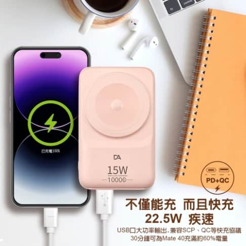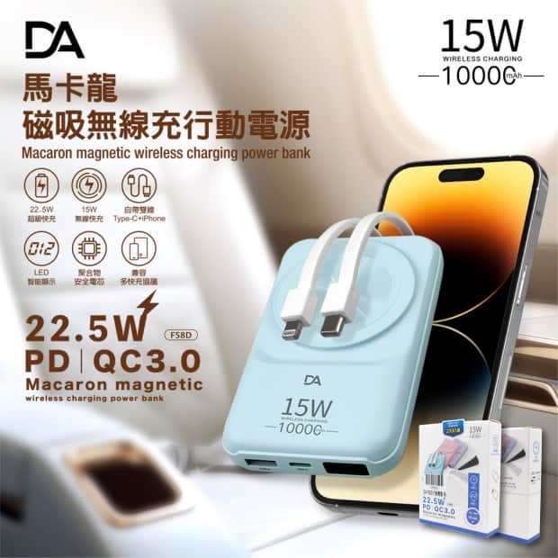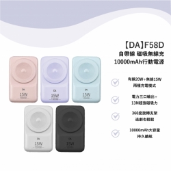 【DA】F58D - 馬卡龍磁吸無線充 / 自帶線行動電源