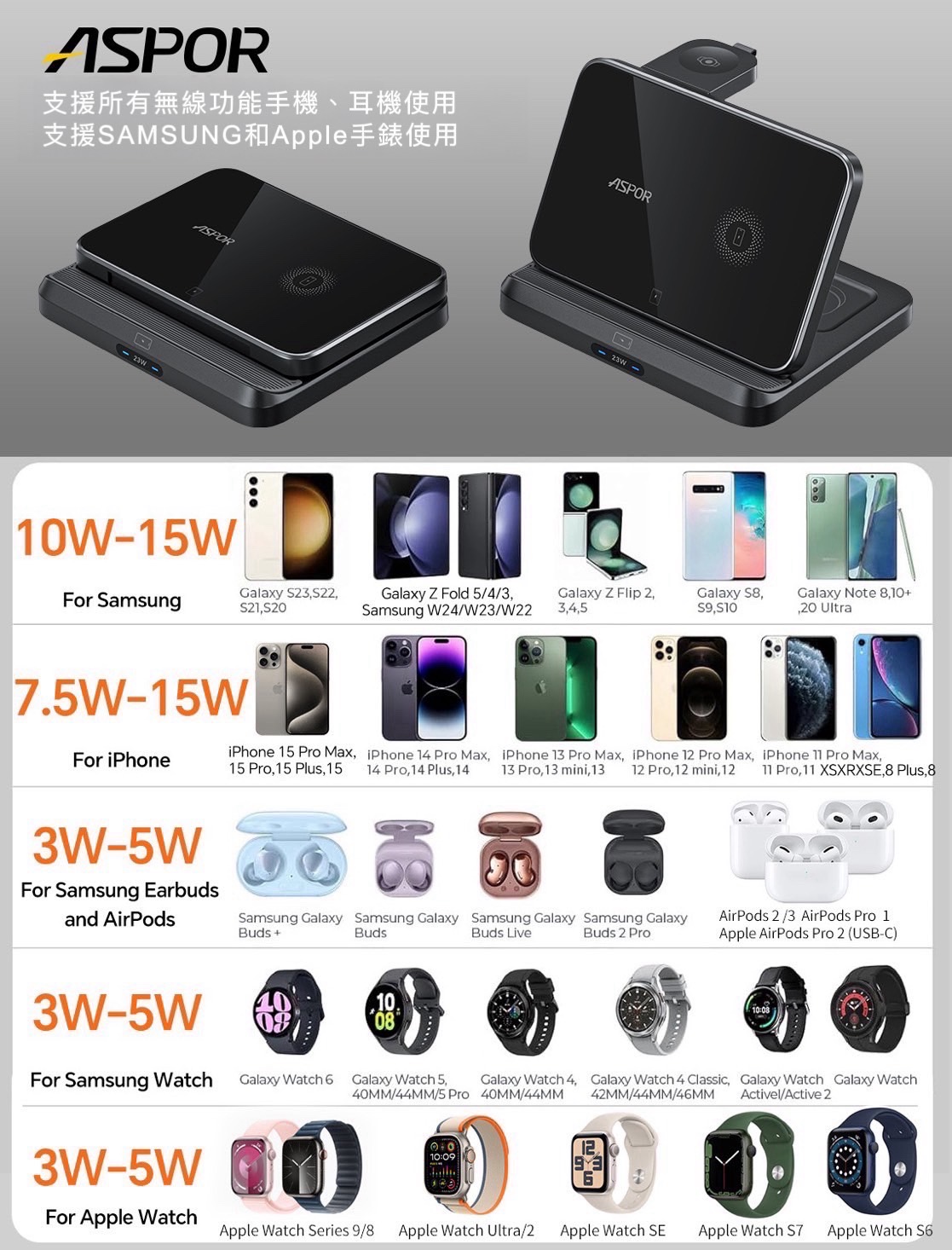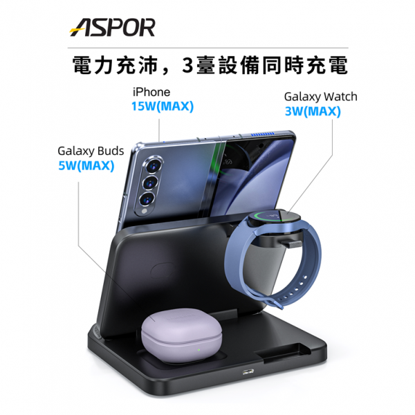 【ASPOR】W21 - 23W多功能摺疊無線充電座