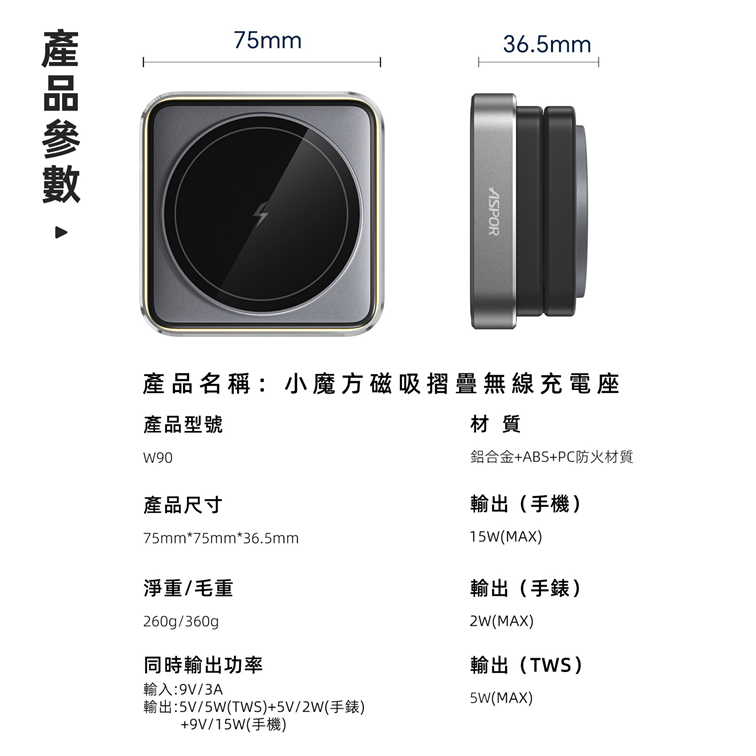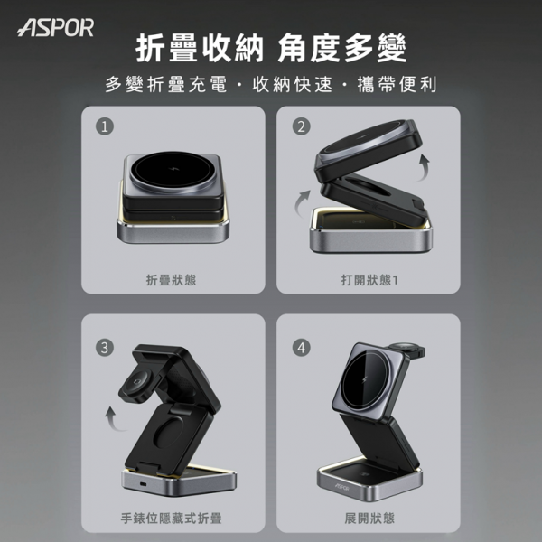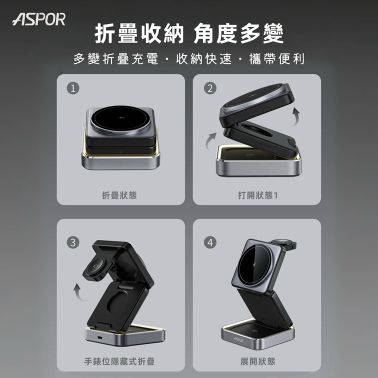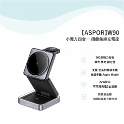 【ASPOR】W90 - 小魔方四合一 摺疊無線充電座