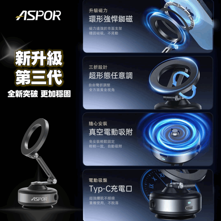 【ASPOR】X94 - 360度三軸摺疊電動真空磁加吸支架