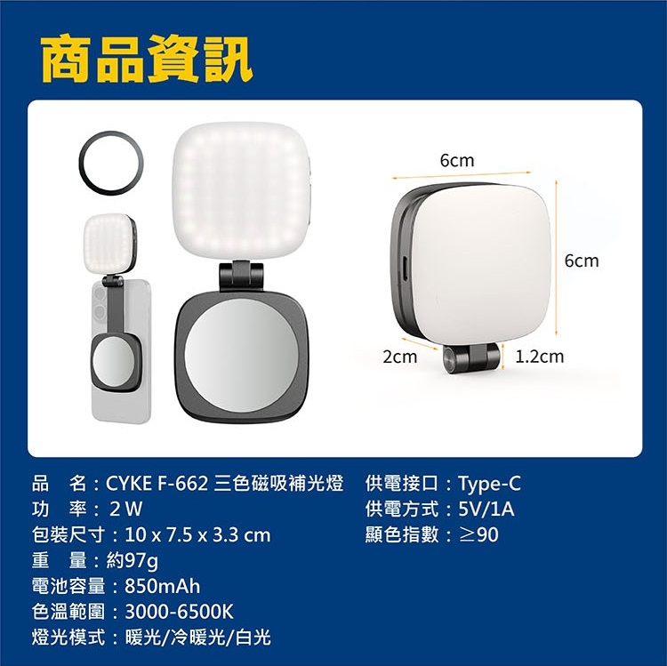 【CYKE】F662 - 三色磁吸&內置鏡子手機補光燈