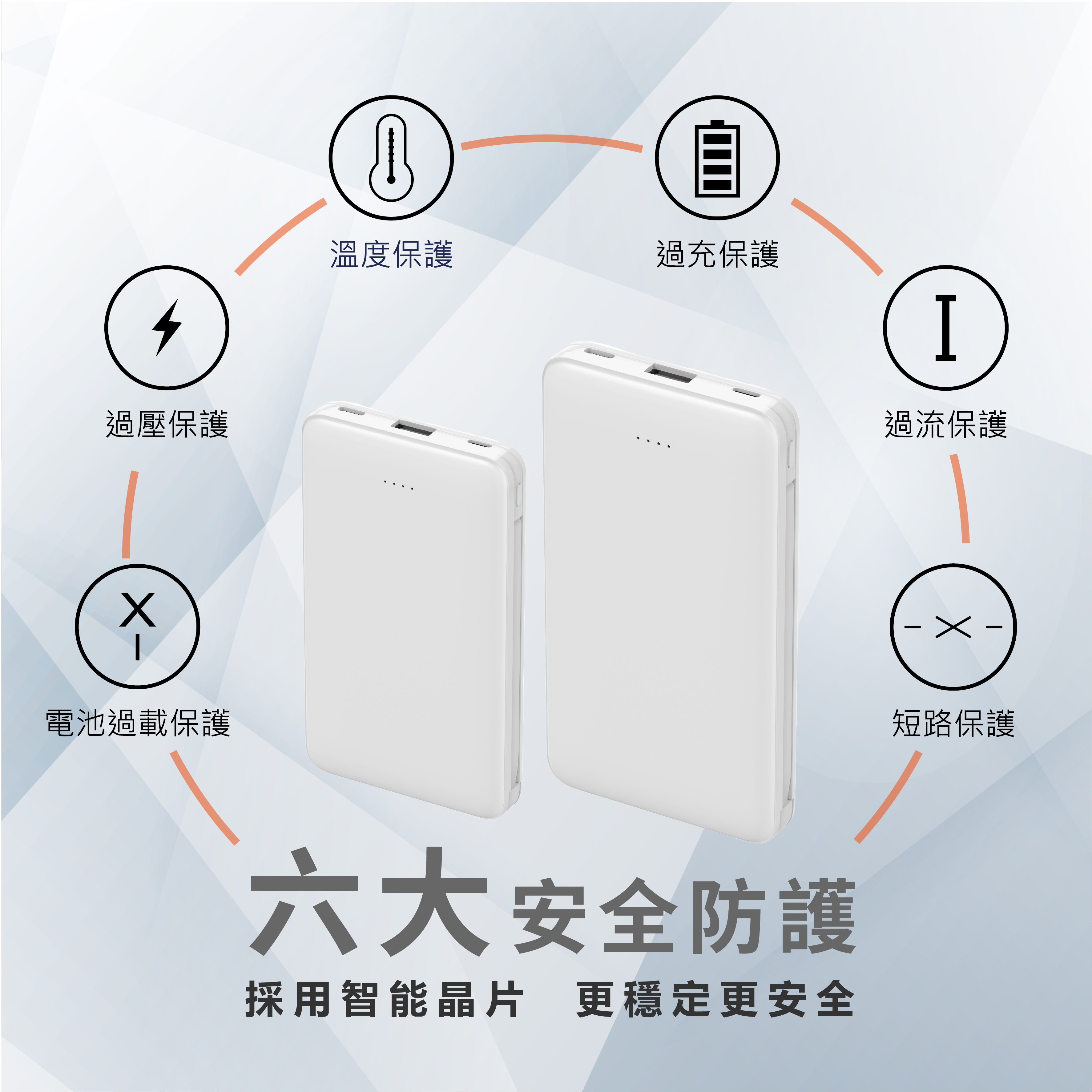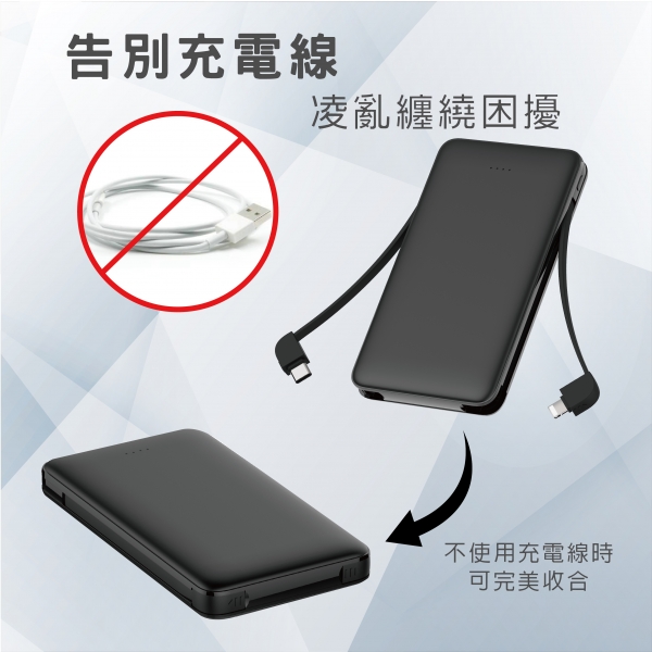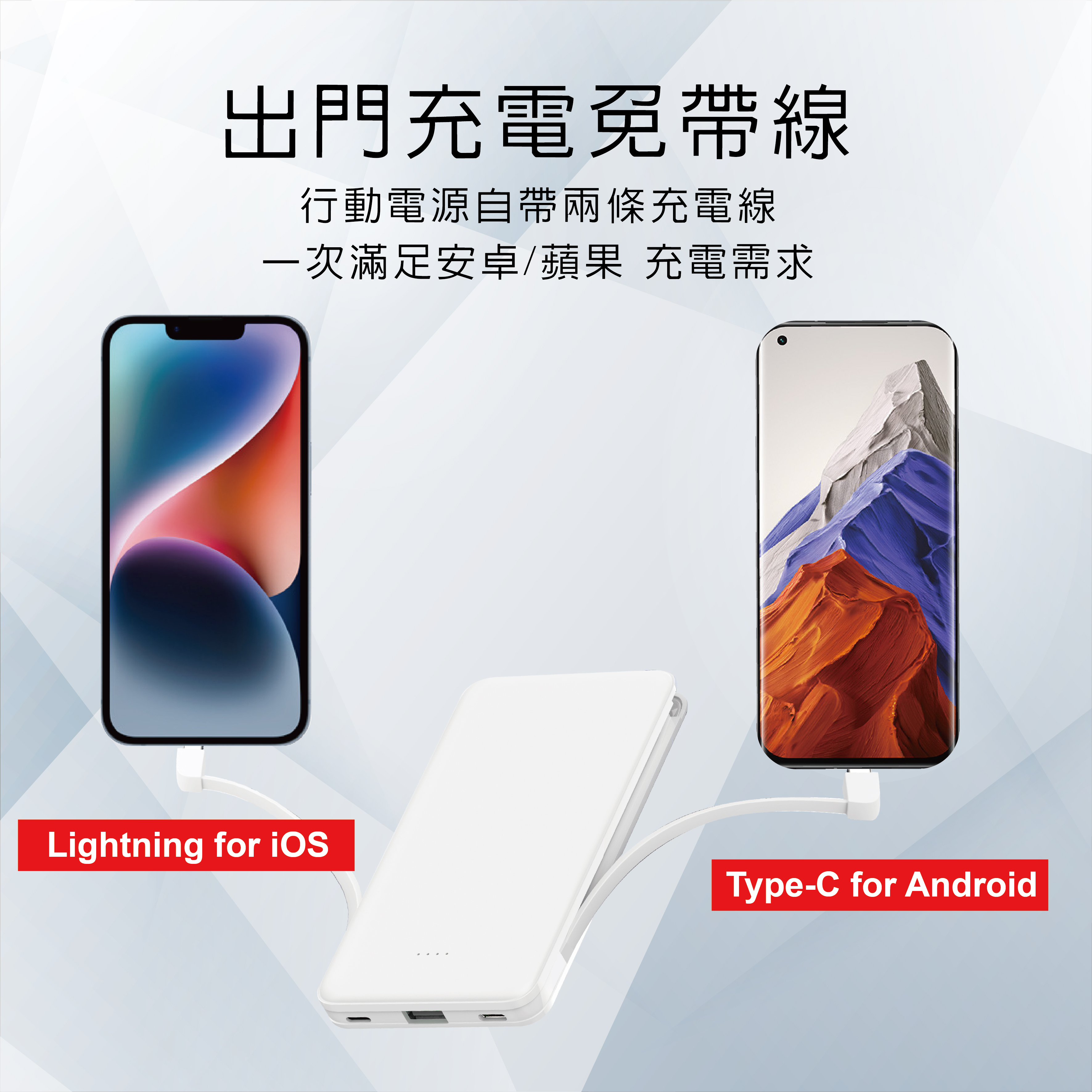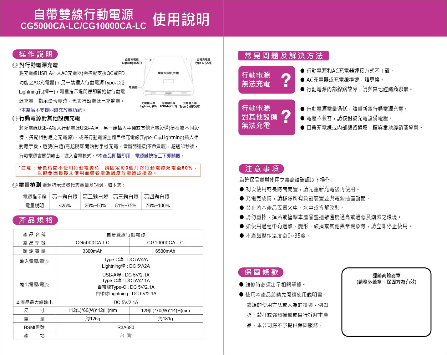CG5000CA-CL - 二代自帶雙線行動電源 • 充電線完美收合 • 智能晶片 六大安全防護 • Type-C & Lightning 輸入 另有客製化印刷服務 點此可看更多資訊!歡迎詢問! 更多其他產品 客製化印刷