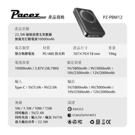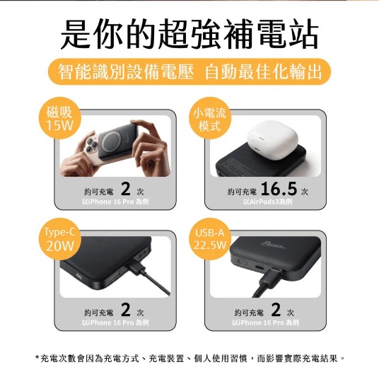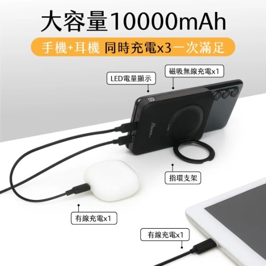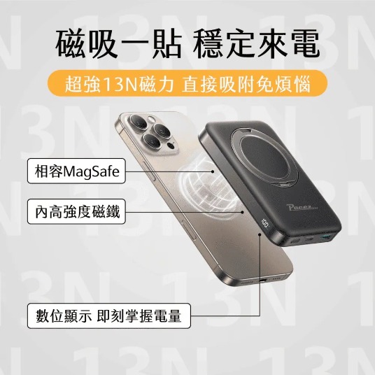 【JOYROOM】JR-PBM12 - 二代磁吸無線10000mAh行動電源 ‧ 有線20W+無線15W 兩種充電模式 ‧ 電力三口輸出 13N超強磁吸力 ‧ 360度旋轉支架 另有客製化印刷服務 點此可看更多資訊! 更多其他商品 客製化案例