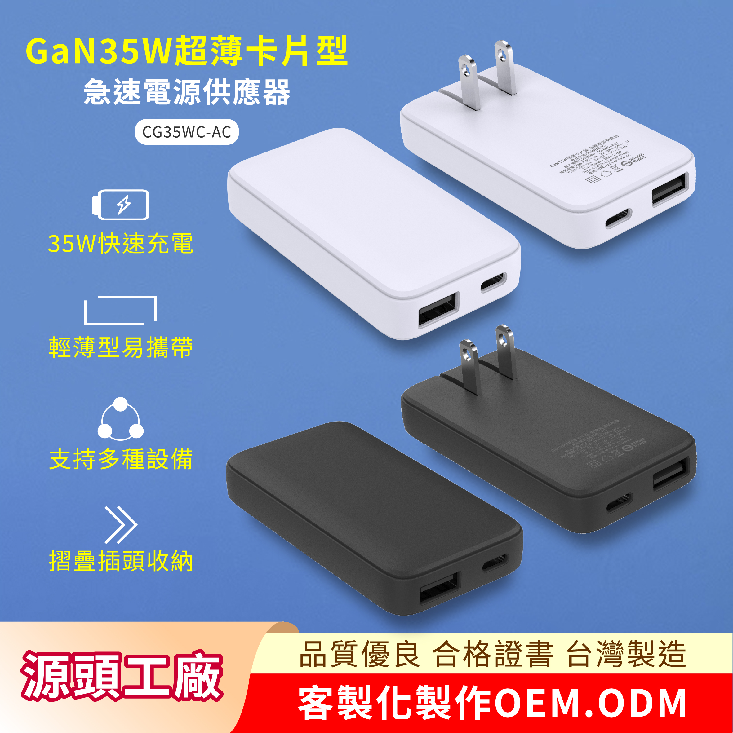 CG35WC-AC 【GaN 35W超薄卡片型急速電源供應器】
