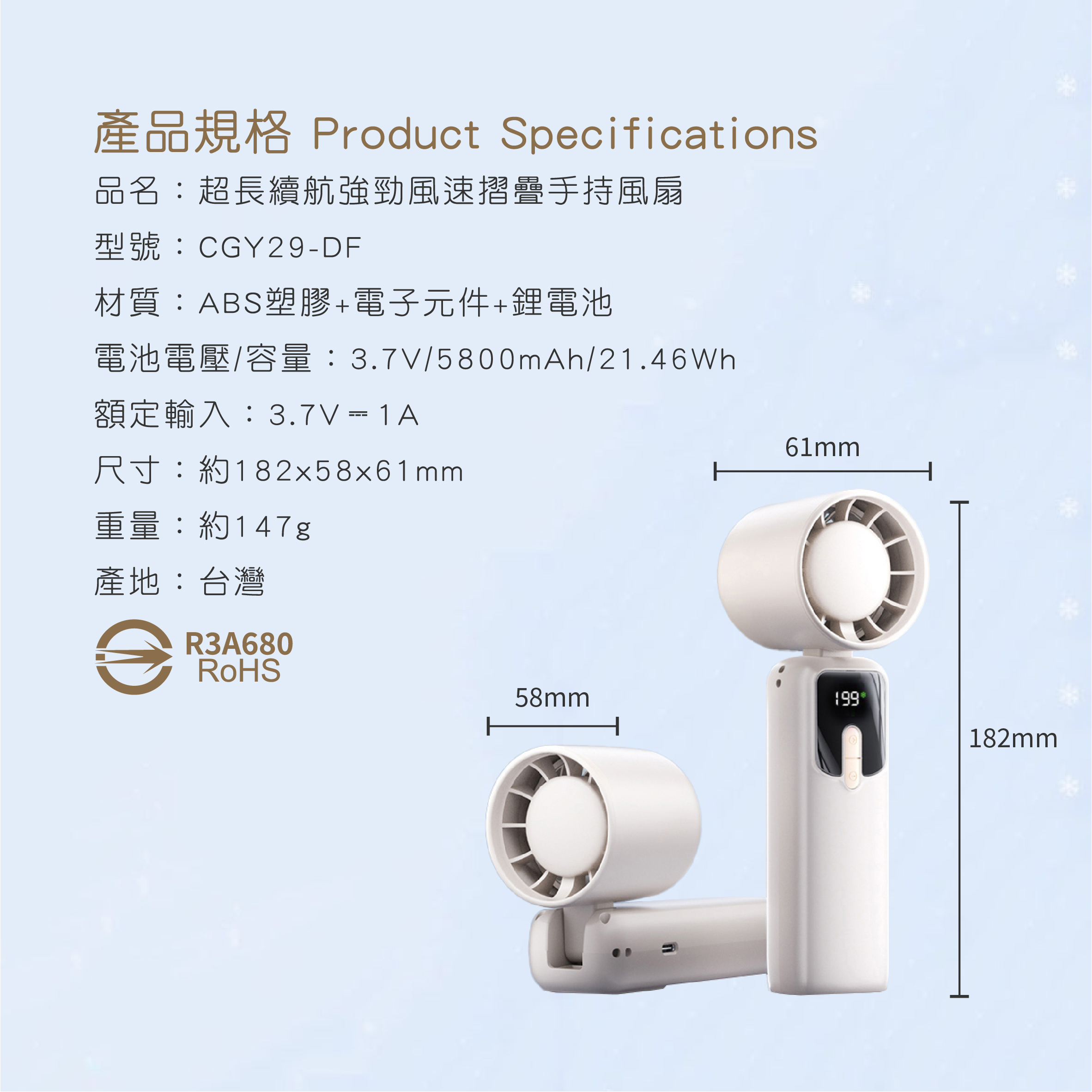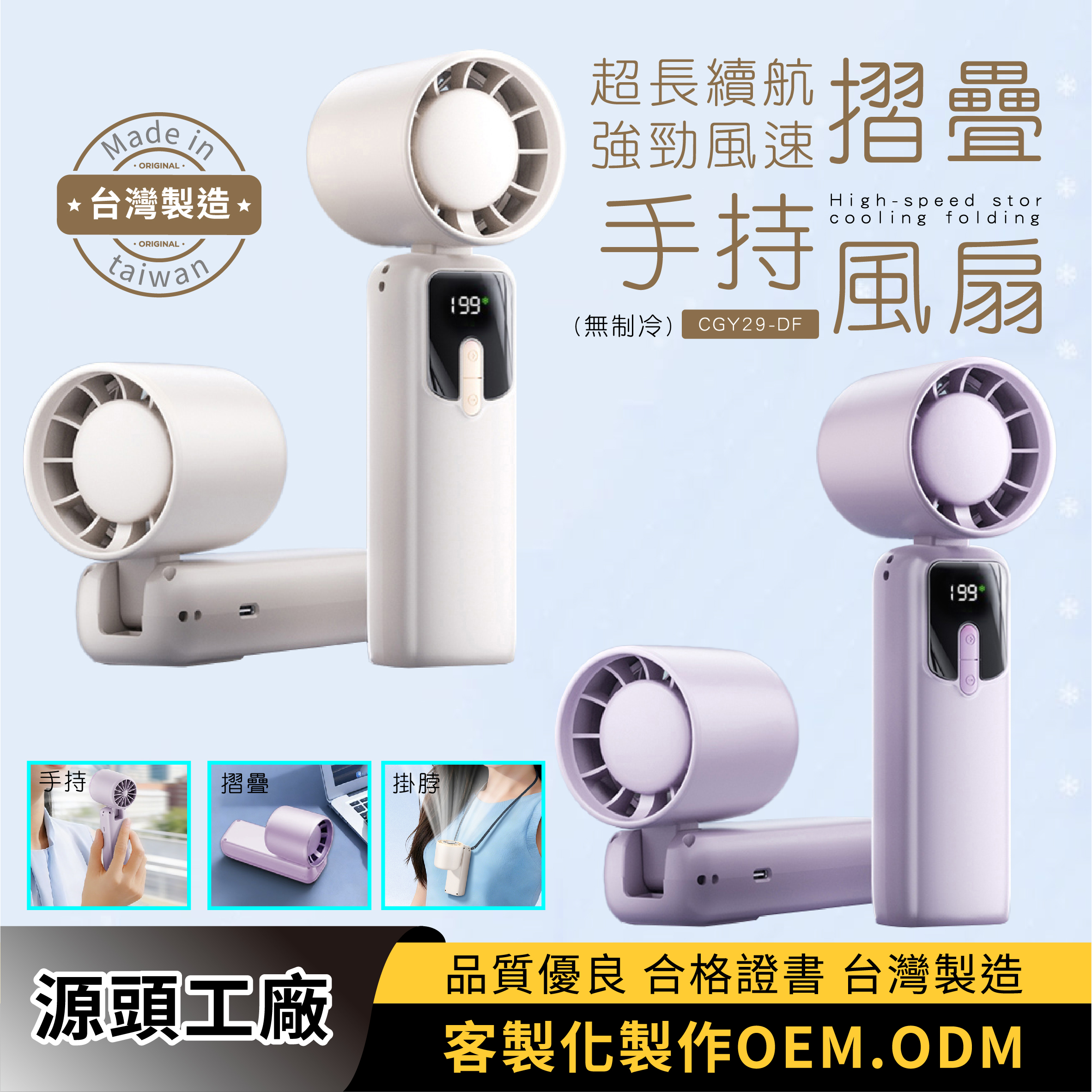 超長續航強勁風速摺疊手持風扇 CGY29-DF